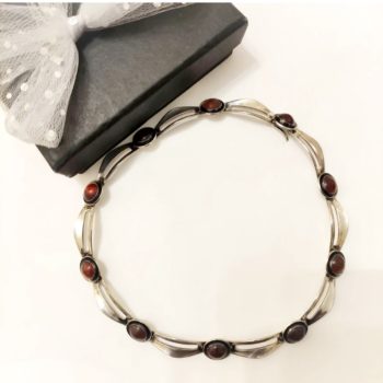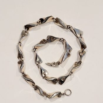Measurements of the total necklace including the original sterling silver chain are 18.5 inches length with an approx drop of 2.3 inches.