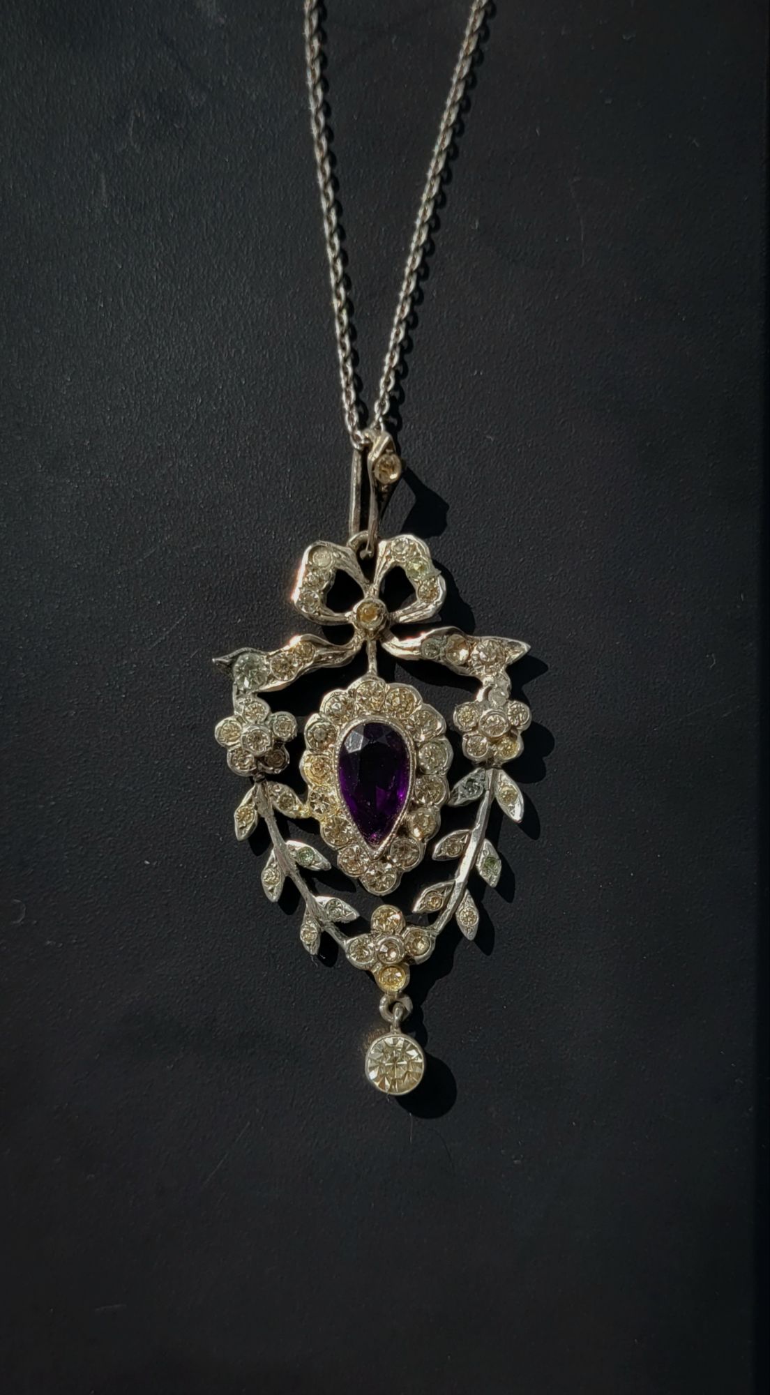 The pendant has beautiful Edwardian/Nouveau curves, complete with original paste dropper and bail.
